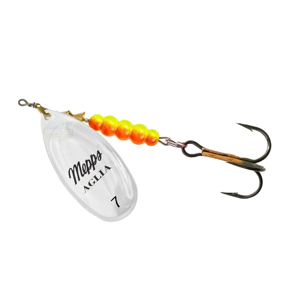 Der Mepps Aglia ist der Spinner, der Mepps berühmt gemacht hat. Der Aglia ist fängig auf alle Raubfische. Die extrem kleinen Modelle sind ideal für Forellenbäche, die grossen Modelle ideale Hechtspinner. Neben dem Mepps Aglia in silber, gold, kupfer und schwarz gibt es den Spinner auch noch mit Punkten für überfischte Gewässer. Spezielle Modelle des Mepps Aglia wie der Aglia mit Fliege, Aglia Amerikas Nr.1, Aglia TW und der Mepps Aglia Forellen Design runden neben den leuchtenden Mepps Aglia Fluo das Mepps Aglia Programm ab. Exterm längig ist auch der Mepps Aglia Tiger, der aufgrund der dreifarbigen Kombination auf dem Spinnerblatt vom Raubfisch in allen Gewässertiefen gesehen werden kann, denn eine Farbe reizt immer.